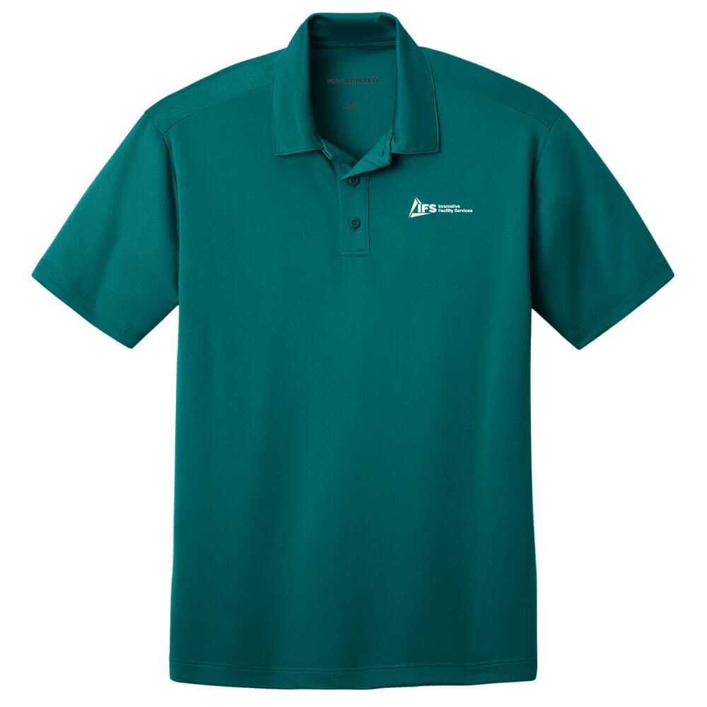 4-ounce, 100% polyester double knit with PosiCharge technology;